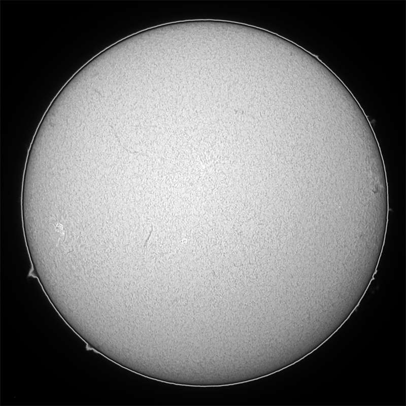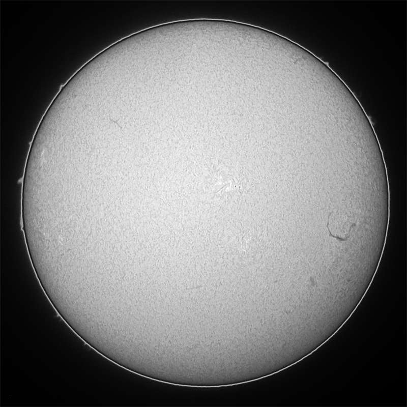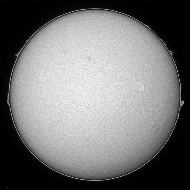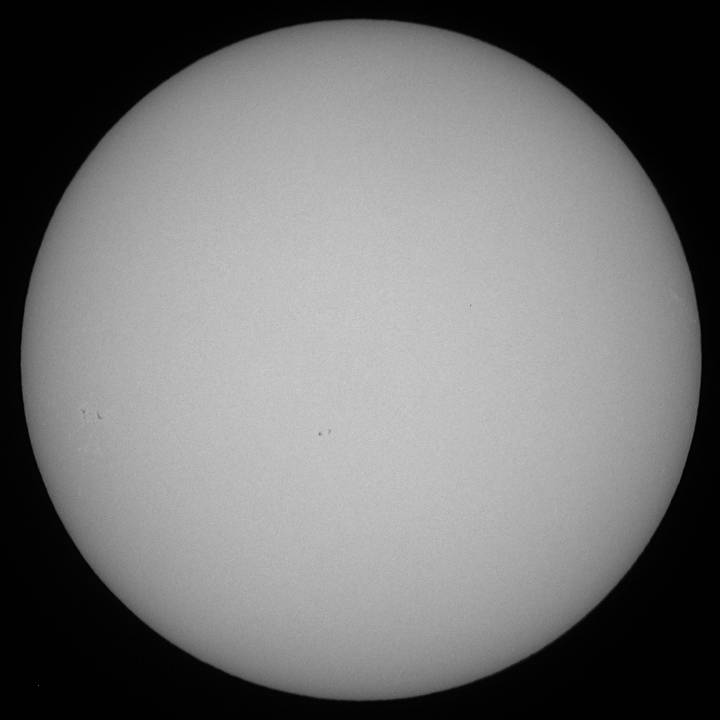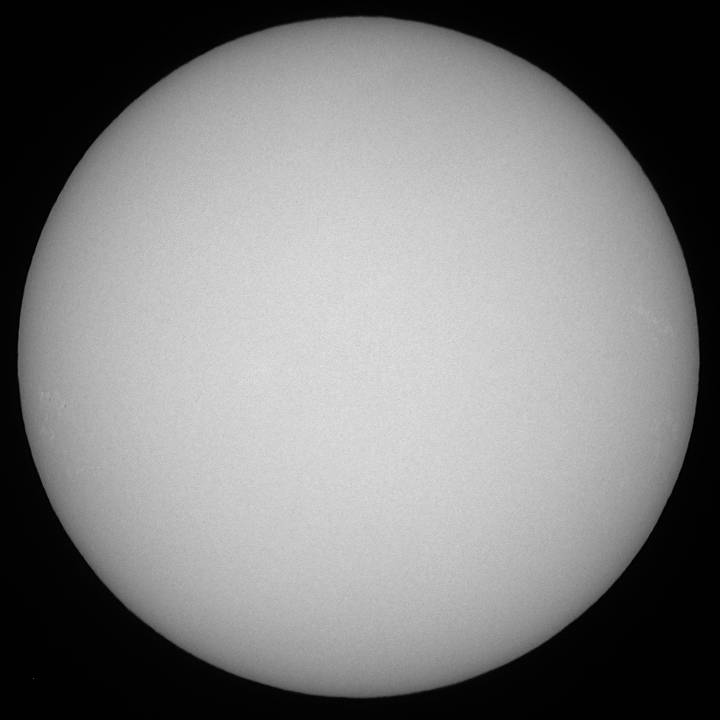 ゲッ!無黒点?いや辛うじてあった。少しシーイングが悪ければ写らないような微小黒点が…。この厳しい状態はいつまで続くのか…。こうご期待? |