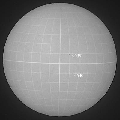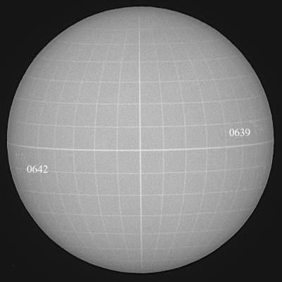 0642群ですが、昨日よりも成長している。そして、同じ南半球ですが、子午線付近にも新群が発生していますね。しかし、残念な事に梅雨空が戻って来る気配。残念だ。 |