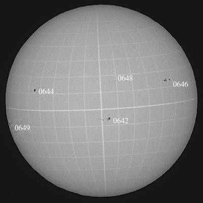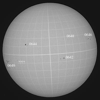 あれ?また一群東出です。前周には群が無かったので新群ですね。この場所は昨年10月末に巨大黒点が3つ発生した場所の一つに近い場所です。0649群は今日もXクラスフレアを起こしました。活発です。