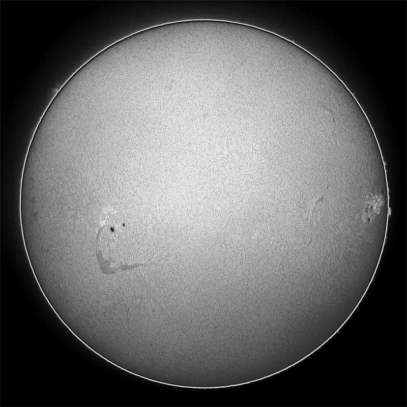 太陽の北半球、高緯度に何やら怪しい影が…。前後のコマを見ると高速に移動しているぞ。どうやら鳥のようです。最近、太陽面を横切る鳥が多いんですよね。何故でしょう?季節的なものでしょうか?でも去年までは気付きませんでしたし…。動画で撮影していても必ずと言って良いほど鳥が写ります。異常気象のせい?