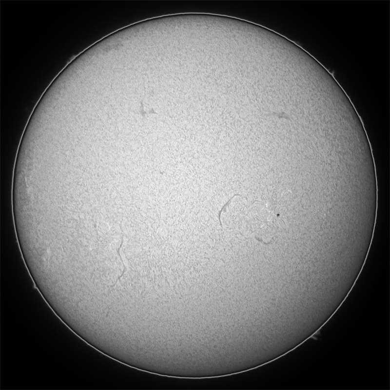 悪天候と体調不良で観測不能が続いておりましたが、満を持して観測再開と行きたいところですが、寂しい太陽面です。辛うじて無黒点は免れているといった感じですね。