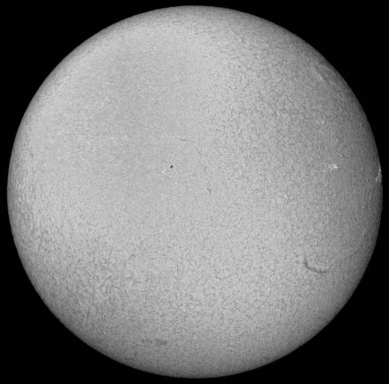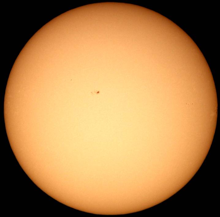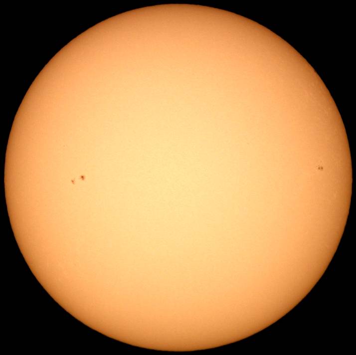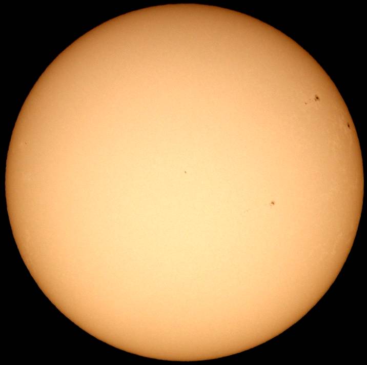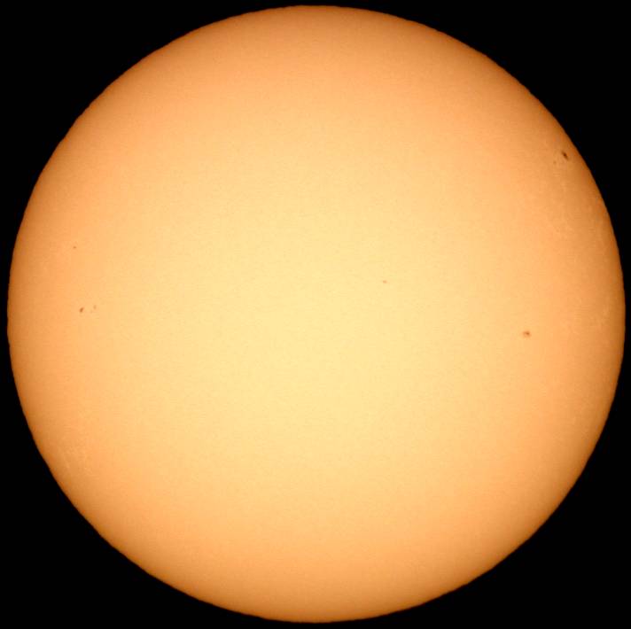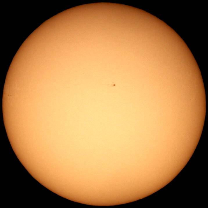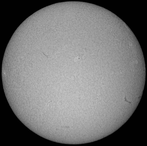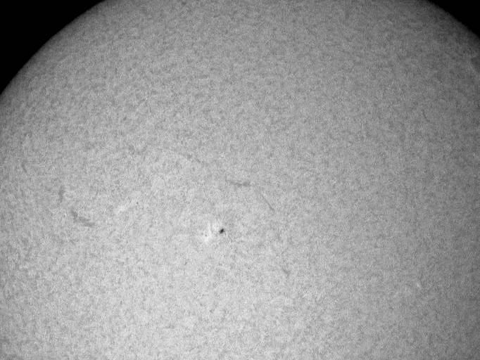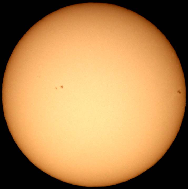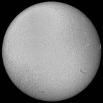 フルディスクのみ撮影。シーイングは良くなく、拡大撮影は中止。西没前の黒点群が成長しだしました。どうして沈む前に成長しだすんだ。残念この上ないです。 |