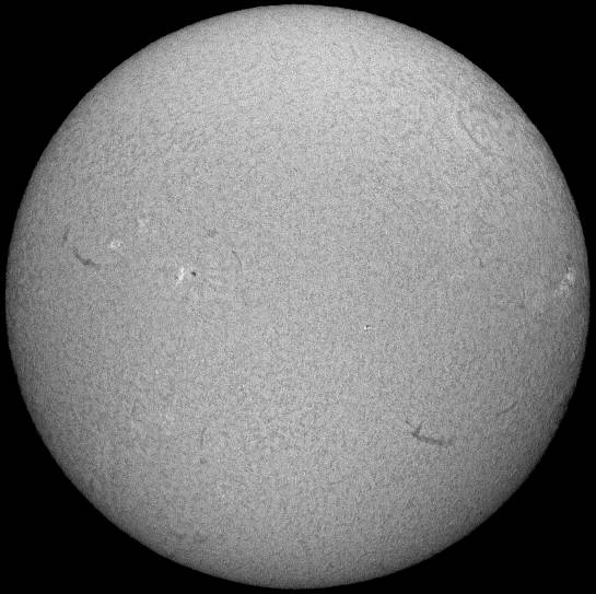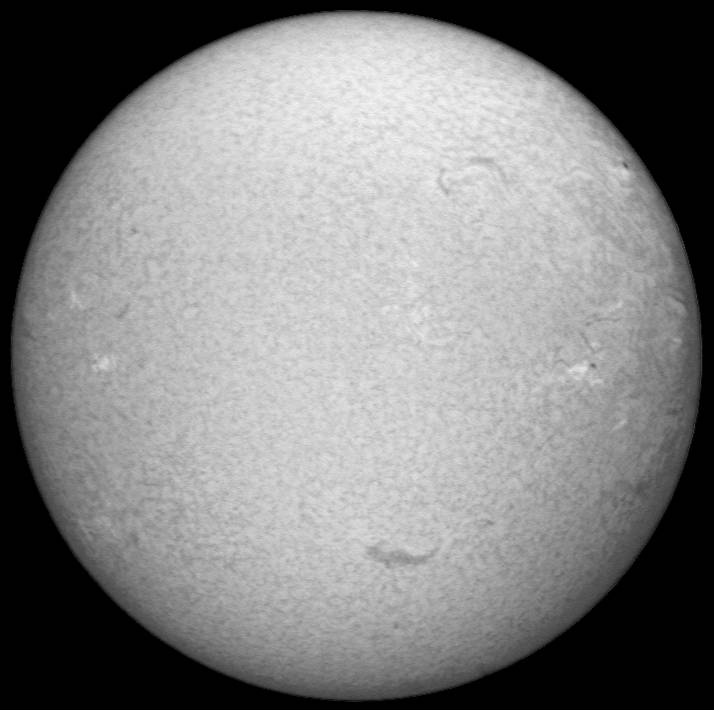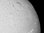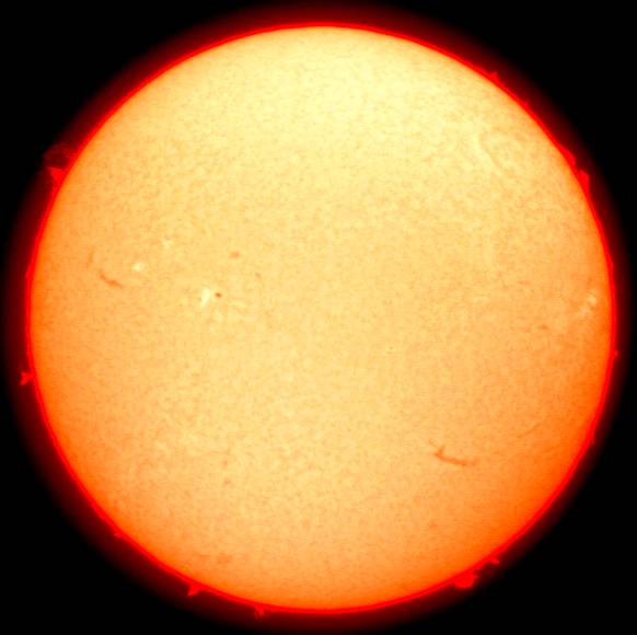 Hαのテスト撮影中に面白い画像が撮れました。ディスク面のどの辺りにプロミネンスがあるのかを知るためにシャッター速度を落として撮影していたら、偶然、彩層の模様とプロミネンスが両方写った画像が撮れました。デジカメのレンジの狭さでは無理と思って諦めていた写真なのですが、意外でした。
