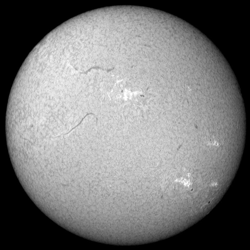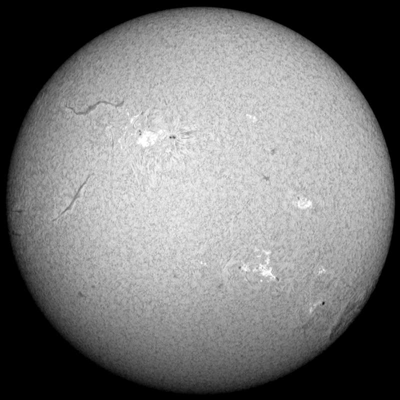 | 今日の一言 久しぶりにこのコーナー?の復活です。Hαの画像の中心よりひだりにフィラメントがあります。上の方のフィラメントはうねっていてミミズのようだ。下の方は、ナメクジのようだ。今日の太陽面にはミミズとナメクジが住んでいる。梅雨が近い? |