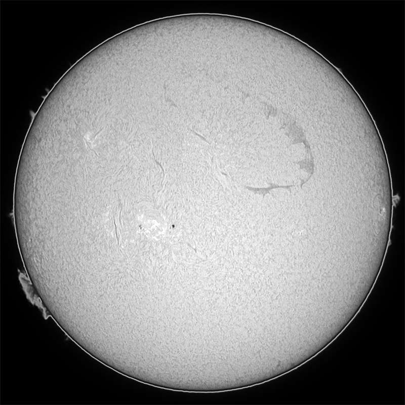 北半球に黒点が多数発生しています。南半球の黒点は面積は小さくなりましたが、同じく数が増えています。フィラメントはエッジ直前まできました。楽しみですね。どんなプロミネンスとして観測出来るのかワクワクします。