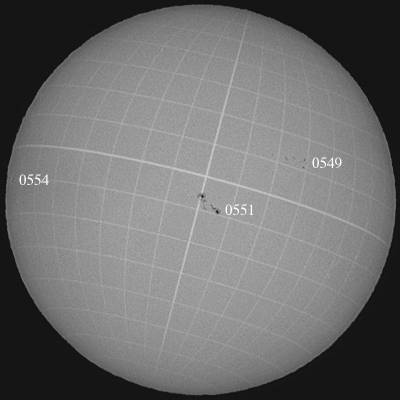 0554群の本体が見えてきましたね。昨日悪天候で欠測ですが、Mクラスフレアを起こしたようで…。0551群よりも暴れそうな予感が…。8日との比較画像では何とも言えませんが、成長中?それとも本体が隠れていただけ?もう暫く観察しないとね…。