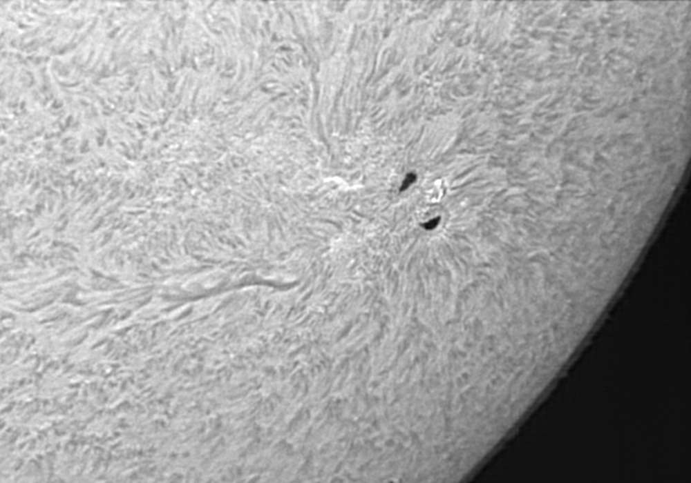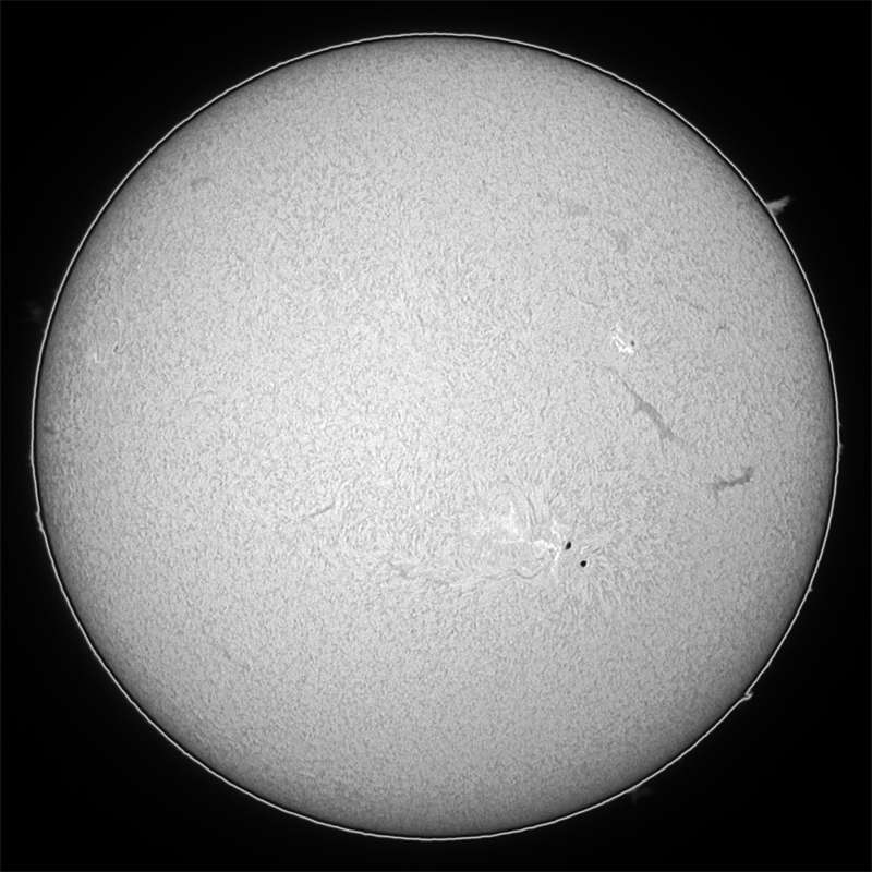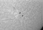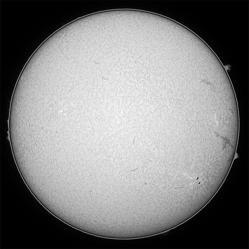 0570群ですが、昨日の段階では、まだ薄っすらと副黒点が見えていましたが、今日の画像からは確認出来ません。順調に衰退している?今日は、うす雲がありましたが、シーイングが良く、Hαスポットでは、またまた素晴らしい画像が得られました。天気が持てば、もっと撮影したかったのですが…。 |