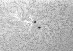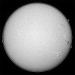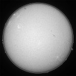 0570群ですが、結局のところ大きなフレアを起こしませんでしたね。大きい、イコール、フレアの図式は、必ずしも成り立たないんですよね。その典型的な例になりましたね。今日は、Hαスポット撮影時にシーイングが安定し、良像が得られました。後継者も無く、また寂しい太陽面になりそう…。残念。 |