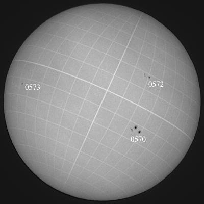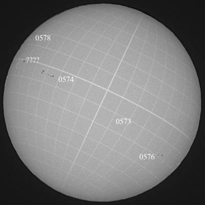 0570群が、西没モードです。途中欠測もありましたが、連続観察も出来たので、結果オーライといったところでしょうか…。しかし、心配なのは、この群の西没後ですね。後を継いでくれそうな群がありません。また、無黒点になるのでしょうか…。 |