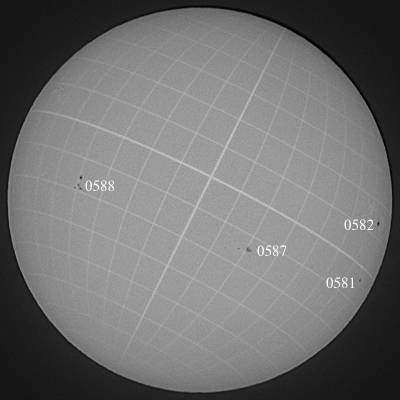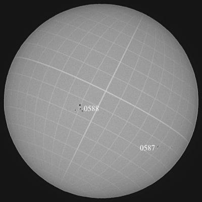 悪天候で一日空きました。その間に0588群が少しですが成長したようです。観測群を切り替えました。その判断が正しかったのかどうなのかは別として、午後にMクラスフレアでお返事頂きました。気合を入れて注目していきましょう。