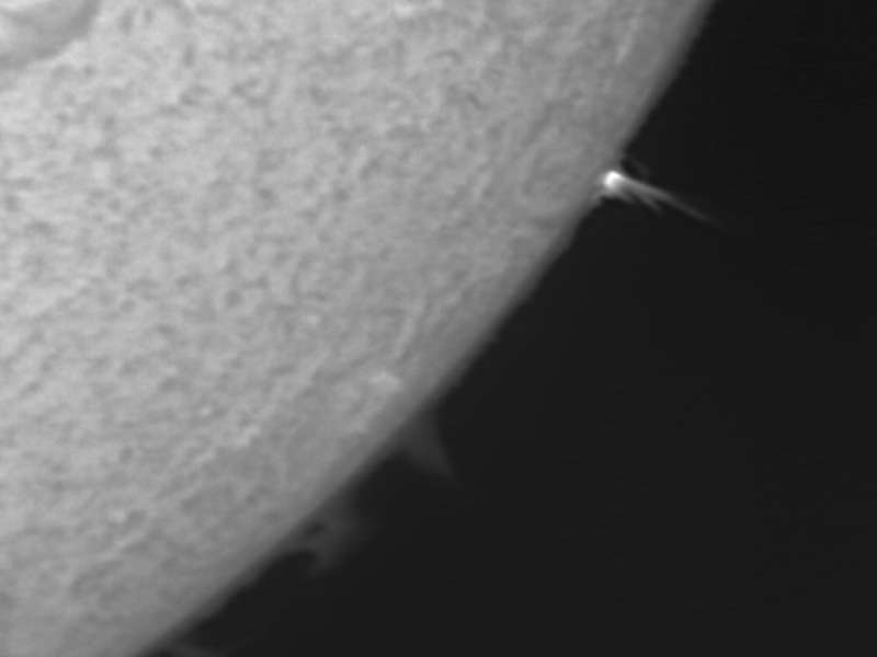 失敗しました。朝の観察で像を得ていましたので昼の観察をどうしようか思案していましたが、情報源のサイトでは特にフレアも無いとの事でしたので、鵜呑みにしていました。しかし、実際には11時過ぎにMクラスフレアが…。直接GOESのX−Rayを見れば良かった…。ここでは1分間隔でX線の状態がわかるのです。残念です。場合によっては残像が観測出来たかも…。