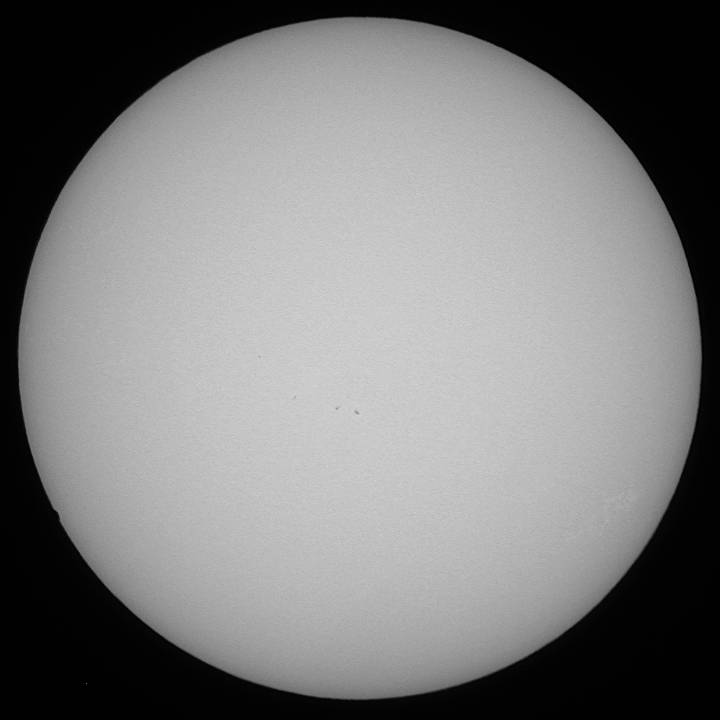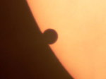 | デジカメ太陽シリーズ 巨大黒点を追え972 朝から雨。ドシャブリ…。私の天気予報では、午後遅く近畿北部で晴れ間が出ると読んでいますが、天気予報では厳しそう。確実に晴れそうなのは、木更津から銚子にかけてか…。う〜ん。北海道は無理だが、木更津なら道が繋がっている。朝6時30分、自宅を出発。関ヶ原・浜名湖を過ぎても雨。こりゃダメか?しかし、静岡に入ると雲間から太陽が…。ネットで情報を集めながら更に北上。神奈川県境で再度雨。しかし、横浜近辺まで来ると、晴れ間が…。問題は、この晴れがいつまで続くかだ…。前線は確実に北西から降りてくる。天気はもつのか?途中首都高で道を間違え、木更津でタイムオーバー。出来れば銚子まで行きたかったが…。安全な場所を探して、車を停車し、準備開始。第一接触まで10分。何とか準備完了。しかし、ヘリコプターが多い?何で?後で確認したがどうやら木更津駐屯地の近くだったようだ。もし、望遠鏡が駐屯地方向に向いていれば攻撃されたかもしれない。冷汗ものだった…。兎に角、準備完了。時々うす雲が通るが、第一接触開始。確認後、拡大に切り替えて撮影続行。しかし、徐々に雲が…。辛うじて第二接触を観察。ブラックドロップは確認出来なかったが結果オーライだ。シーイングが良すぎたのだろう。兎に角撤収だ。結局この30分間の為に往復14時間車を運転しました。 |